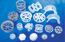 塑料散堆填料是以耐化學腐蝕的材料,包括聚乙烯(PE)、聚丙烯(PP)、增強聚丙烯(RPP)、聚氯乙烯(PVC)、氯化聚氯乙烯(CPVC)、及聚偏氟乙烯(PVDF)等制成。它具有空隙率大、壓降小、汽液接觸充分、比重輕、傳質(zhì)效率高等特點。使用溫度為60-150°C。廣泛用于石油、化工、氯堿、煤氣、環(huán)保等行業(yè)。